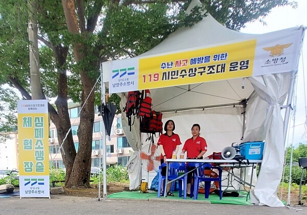 119시민수상구조대는 남양주소방서 소속 수동의용소방대원으로 구성되고 운영기간은 7. 1. ~ 8.31. 이며 총 8명의 수변안전요원이 배치된다.