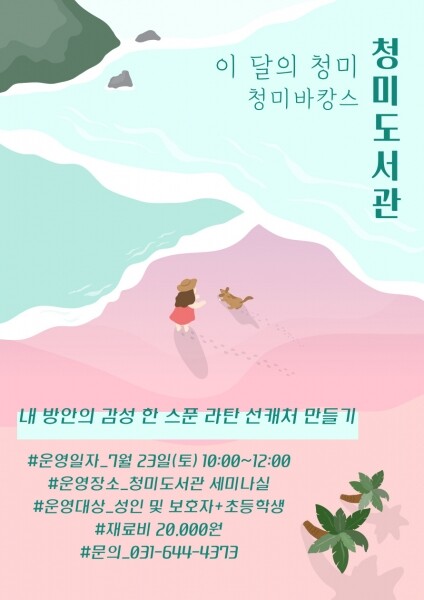 청미도서관과 함께 떠나는 바캉스라는 컨셉으로 ‘내 방안의 감성 한 스푼 라탄 선캐처 만들기’프로그램을 운영한다.