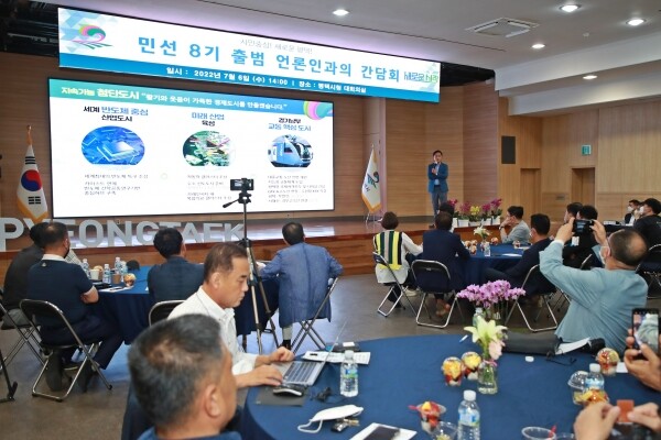 정장선 평택시장과 최원용 부시장, 실·국·소장 등 간부 공무원 및 언론인이 참석한 가운데 언론인과의 상견례, 민선8기 중점 추진방향 브리핑, 질의응답 순으로 진행됐다.
