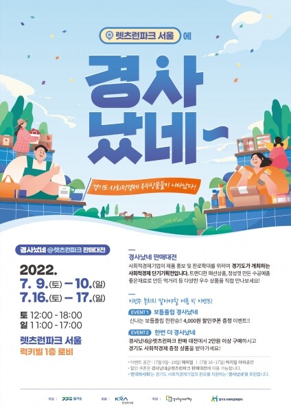 이번 기획전은 경기도 사회적경제기업의 제품 홍보와 판로 확대를 위한 것으로 ‘경사났네’는 ‘경기도 사회적경제 나타났다’라는 뜻을 담고 있다.
