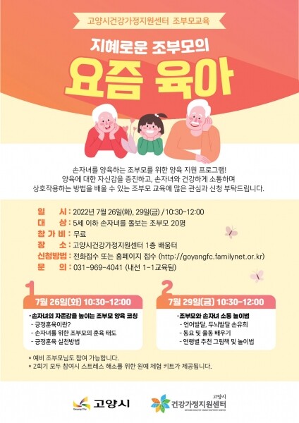 교육은 7월 26일 7월 29일 이틀간 고양시건강가정지원센터에서 진행되며 참가비는 무료이다.