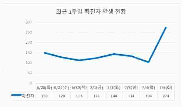 부천시는 2022년 7월 6일 0시 기준 부천시 코로나19 확진자는 274명으로 1주전 대비 83%가 증가하고 지난 5월 24일 이후 6주 만에 최다 확진자가 발생하는 등 재유행 우려가 커지고 있다고 밝혔다.