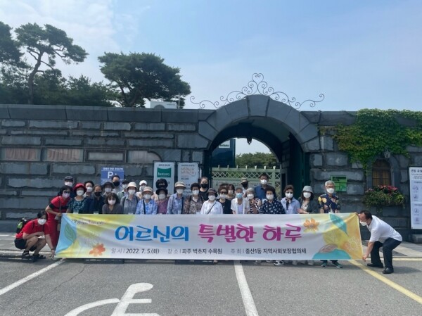 중산1동 지역사회보장협의체는 나들이가 힘든 어르신에게 일상에서 벗어나 기분 전환과 삶의 활력소를 되찾아 드리고자 ‘어르신 나들이 행사’를 마련했다.