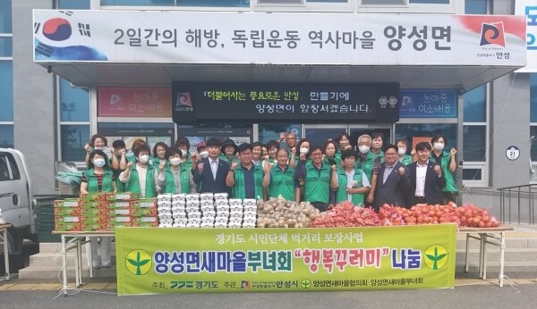 한편 양성면 새마을부녀회는 오는 11월까지 매달 농산물꾸러미 나눔 행사를 개최할 예정이며 이 밖에 송편 및 김장김치 나누기 행사, 한천 꽃길 가꾸기 등 다양한 활동도 추진할 계획이라고 밝혔다.