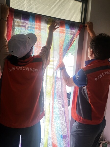 밑반찬 지원 대상인 어르신의 집을 살펴본 봉사단원들이 무더위로 불편을 겪고 있는 실정을 알고 도움을 드리기 위해 방충망 수선과 출입구 가림막 설치 등 이웃사랑을 실천한 것이다.