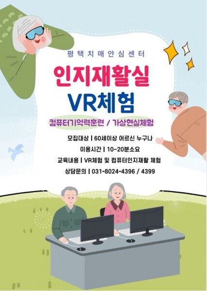 평택치매안심센터 관계자는 “VR기기, 컴퓨터를 활용한 인지훈련프로그램이 어르신의 지각 및 인지 기능을 향상시키고 치매를 예방하는 데 큰 도움이 되길 바란다”고 전했다.
