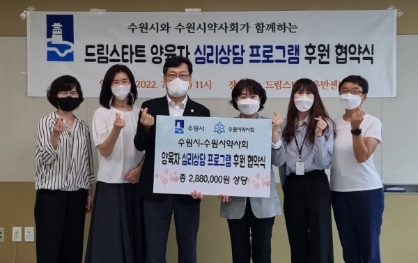 협약에 따라 수원시약사회는 드림스타트 아동통합사례관리사가 심리상담이 필요하다고 판단되는 양육자 12명에게 개인별 최대 6회의 상담, 총 288만원 상당의 비용을 후원한다.