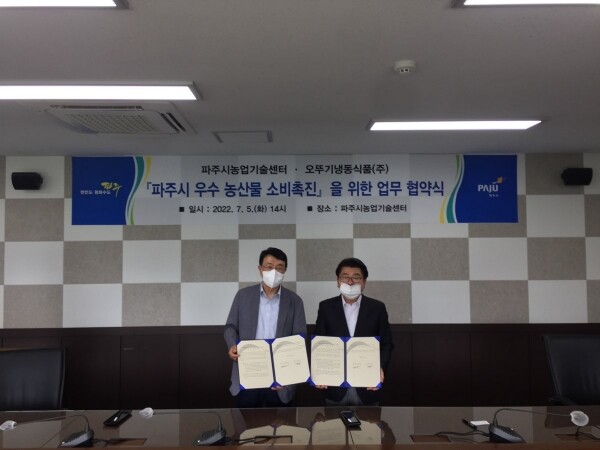 이날 협약에서 파주시는 보조사업을 통해 관내 농가가 우수 농산물을 생산할 수 있도록 하며 우수 농산물에 대한 정보를 제공하고 오뚜기냉동식품에서는 파주 농산물을 활용한 제품을 개발하고 안정적인 판로를 확보할 수 있도록 협력하기로 했다.