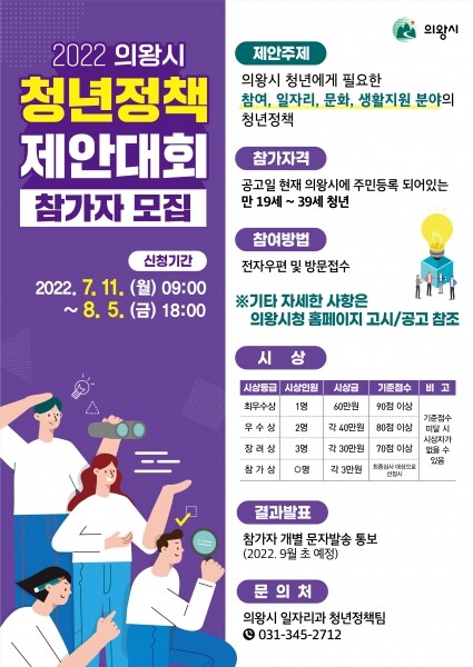 김성제 의왕시장은 “청년들을 위한 참신한 정책 제안대회에 많은 관심과 참여를 부탁드린다”며 “청년들의 눈높이에 맞는 맞춤형 정책 발굴로 정책실효성을 높여 청년이 웃는 도시 의왕 만들기에 최선을 다하겠다”고 말했다.