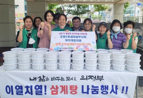 호원2동새마을부녀회는 우리동네 좋은이웃 홈클리닝 사업 참여 및 가정의 달 맞이 열무김치, 어르신을 위한 효도 반찬 및 각종 밑반찬 나눔 등의 활동으로 이웃사랑을 꾸준히 실천해왔으며 이번에는 다가오는 초복을 맞아 취약계층을 위해 영양과 정성이 듬뿍 담긴 삼계탕을 기탁한다고 전했다.