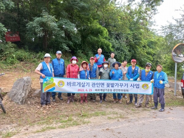 관인면 문화재생연구회가 마을주민과 어르신 회원을 주축으로 6월 중순부터 해바라기 씨앗을 직접 발아시켜 묘종을 기르고 시내 동산의 정원부지와 하천변, 마을입구, 주민자치센터 등 유휴지에 단체와 주민들이 함께 식재한다.