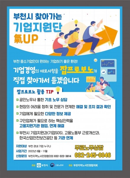 분야별 전문가로는 노무상담 분야 산업안전보건 분야 노동상담 분야 구인구직 분야 등을 포함해 고용노동부 부천지청도 함께한다.