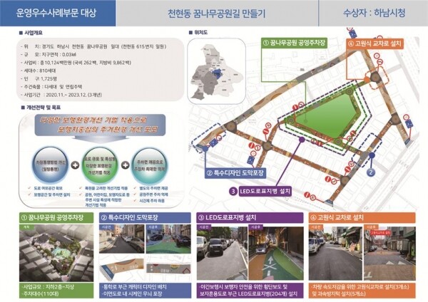 또 어린이 안전시설 설치, 고원식 교차로 LED 도로표지병, 꿈나무공원 지하 공영 주차장 조성사업을 연계해 추진했다.
