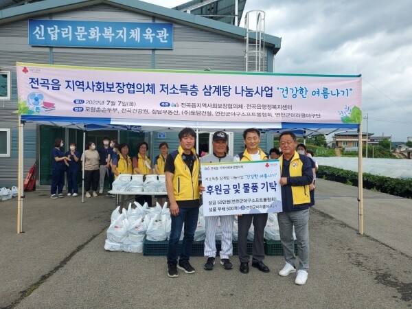 전곡읍 지역사회보장협의체는 지난 7일 사회복지공동모금회 지정 기탁 사업의 일환으로 전곡읍 식생활 취약계층 250명을 대상으로 저소득층 삼계탕 나눔사업을 실시했다.