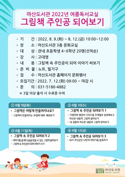 자세한 내용은 마산도서관 홈페이지 문화행사 신청에서 확인할 수 있다.