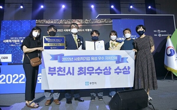 한편 같은 날 이어서 개최된 기획재정부 주관 사회적경제 유공자 정부포상 행사에서 부천시사회적경제센터가 2022년 사회적경제 활성화 유공 ‘대통령표창’을 수상하는 쾌거를 이루어 겹경사를 맞았다.