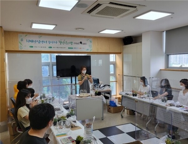 이를 위해 스트레스 완화와 더불어, 종사자들 간의 친목을 다질 수 있도록 원예, 아로마, 요가, 심리지원 등 다양한 프로그램을 구성했으며 치매안심센터별로 직접 찾아가는 방식으로 진행하고 있다.