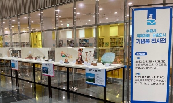 수원시는 8월 31일까지 광교홍재도서관 1층 로비에서 14개국 18개 국제자매·우호도시의 기념품 70점을 전시한다.
