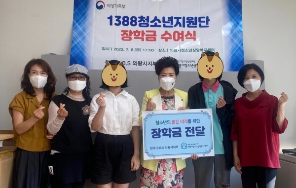한편 장학금을 지원한 한국 B.B.S 의왕시지부는 의왕시 1388발견·구조지원단으로서 관내 위기청소년을 발굴하고 연계하는 역할을 하며 청소년 삶의 질 향상에 기여하고 있다.