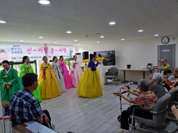 특히 7월 경희요양원에서 진행된 공연에서는 지난 3년 간 코로나19로 외부인은 물론 가족들도 시설에 방문하기 어려워 우울했던 어르신들이 전통무용 공연을 감상하며 열렬한 환호와 박수를 보내며 직접 접할 수 있는 공연의 매력과 감동, 즐거움을 더했다.