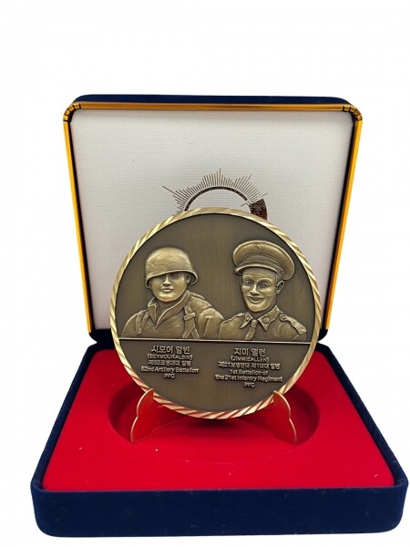 올해 제작한 ‘기념코인’에는 참전용사의 성 알파벳 순에 따라 선정된 시모어 알빈과 지미 앨런의 모습, 이름, 당시 소속 및 계급이 새겨져 있다.