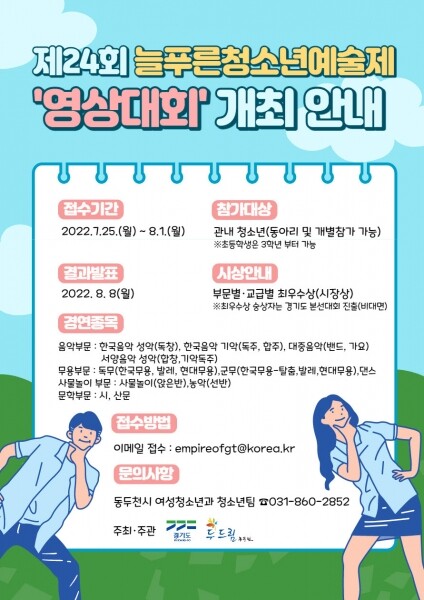 참가접수 기간은 오는 7월 25일부터 8월 1일까지 8일간이며 참가를 원하는 청소년은 접수 기간 내에 이메일로 참가신청서와 영상을 제출하면 된다.