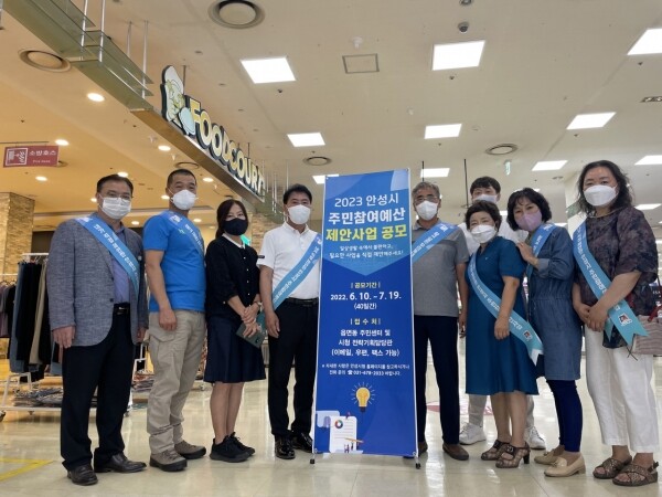한편 안성시는 안성시민 및 관내에서 근무하는 직장인, 관내 대학생들을 대상으로 2023년 주민참여예산사업 제안사업을 오는 7월 19일까지 접수받고 있다.