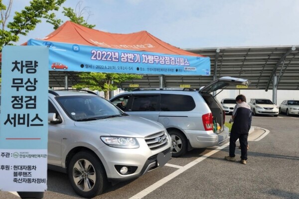이날 ‘죽산자동차정비’의 재능기부와 후원을 통해 약 30여명의 이용자에게 차량 점검 상담 및 워셔액 및 엔진오일 교체, 타이어압, 배터리 점검 서비스 등을 지원했다.