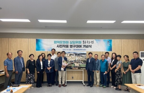 이번 행사는 지역 사진작가로도 활동하고 있는 최 위원이, 지난 4.26.~6.5. 북부문화예술회관에서 4명의 작가와 함께 ‘작가의 시선-평택 아카이브전’을 개최 후, 전시회를 찾지 못한 지역주민들이 상시 편안하게 관람할 수 있도록 전시사진 중 12점에 대한 영구대여의 뜻을 밝혀 추진하게 됐다.