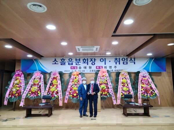 최영주 회장은 “지난 8년간 소흘읍 발전에 큰 공적을 남기고 이임하는 전임 송태원 회장님의 뒤를 이어 존경받는 노인사회, 행복한 노인사회가 되도록 최선을 다하겠다.
