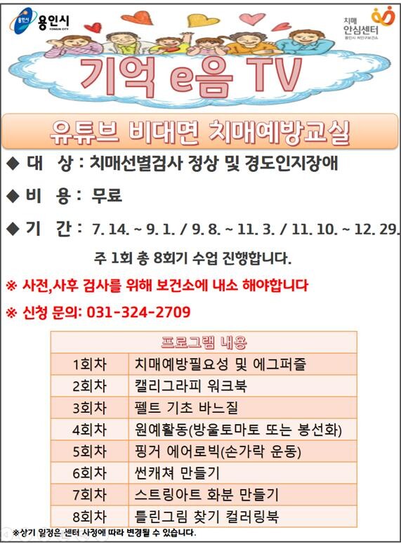 '기억ⓔ음 TV'는 보건소 방문이 어려운 농촌 지역 주민과 거동이 불편한 어르신들을 위해 처인구보건소 치매안심센터에서 지난해 3월부터 운영 중인 유튜브 채널이다.
