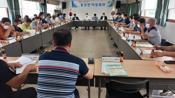 이번에 실시한 이장회의는 흥천면 바로알기, 간담회 일정알림, 의약분업 예외지역 지정 취소알림, 본인서명사실확인서 발급안내, 임산부 교통비 지원 온라인 신청, 기본형 공익 직접지불금 등록증 교부, 농민기본소득 지원사업 추가신청안내, 임업 직불제 신청접수안내, 슬라브 지붕 위 옥상 비가림시설 현황조사 등의 사업을 홍보했다.