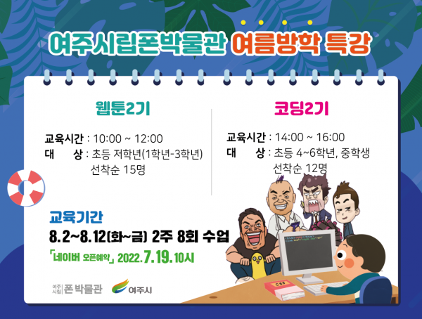 여름방학 체험교육은 ‘웹툰 만들기’와 ‘코딩스쿨’로 운영된다.