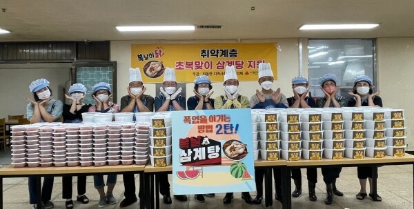 지난 6월 취약계층에 시원한 의류 지원으로 시작해 2차로 ‘초복 맞이 삼계탕’을 직접 끓여 홀몸 어르신 및 장애인 등 200가구에 전달했다.