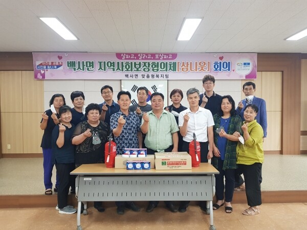 이날 회의에 참여한 임관빈 위원장은 “물품을 지원해 주신 백사의용소방대에 백사면지역사회보장협의체를 대표해 감사드리며 화재안전 및 어르신들의 여름철 안전을 위해 더욱 힘쓰겠다”고 말했다.