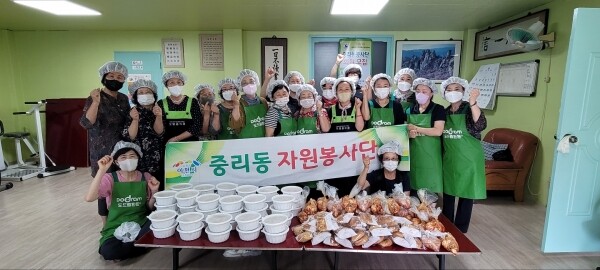 중리동 자원봉사단 32명의 회원은 2009년부터 중리동 취약계층의 건강과 안부를 위해 매달 둘째 넷째 월요일 사랑의 밑반찬 배달 봉사와 시각장애인 봉사를 해오고 있다.