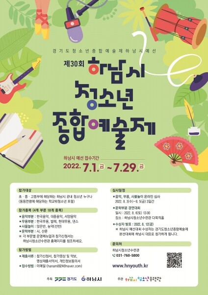 이번 대회에서 최우수상을 수상하는 청소년은 경기도청소년종합예술제에 하남시 대표로 참여하게 된다.