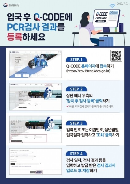 이에 따라 해외입국자들은 입국 후 3일 이내 받아야 하는 유전자증폭검사 결과를 검역정보 사전입력시스템에 등록해야 하며 보건소는 Q-code에 등록된 해외입국자들의 검사 결과를 확인한 뒤 미검사자에 대해서는 검사 수행을 독려하게 된다.