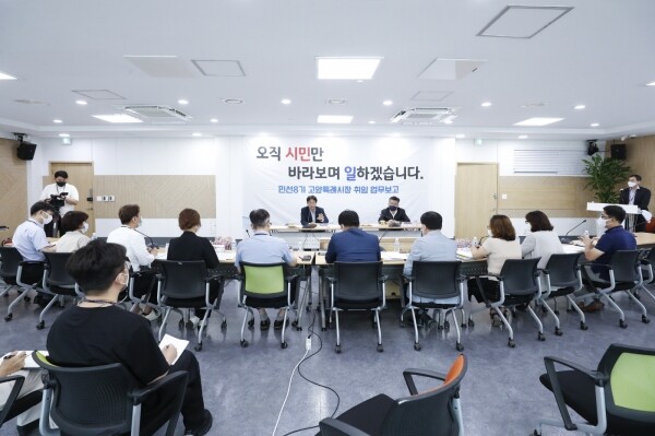 이동환 고양특례시장은 “시민이 행복하기 위해서는 공직자들의 노력이 매우 중요하다 살고 싶은 도시는 시민들과 공직자들이 함께 만들어 나갈 때 이뤄낼 수 있다”고 강조하며 “시민의 희망이 현실이 되고 누구나 행복을 누리며 사는 ‘시민행복도시, 고양’을 건설하는데 3천400여 공직자 모두 역량을 집중해주길 바란다”며 첫날 보고를 마쳤다한편 고양시는 업무보고를 7월 21일까지 진행할 예정이며 업무보고를 통해 시정 운영 방향을 구체화 할 계획이라고 전했다.