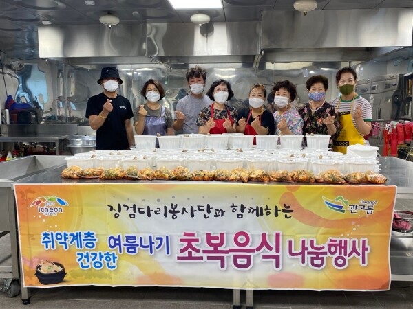 노재덕 관고동장은 “초복을 맞이해 어려운 이웃을 돕는 봉사에 앞장서주어 감사하며 징검다리봉사단의 나눔과 봉사를 기반으로 더불어 살기 좋은 행복한 관고동 만들기에 노력하겠다”고 말했다.