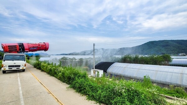 이번 방제는 민·관 합동 방식으로 방제효율을 높이기 위해 시설하우스 내부는 농가가 자체 방제하고 주변 해충 서식지는 농업기술센터에서 방제하며 방제 면적은 90ha이다.