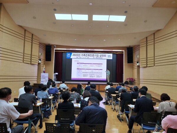 이날 설명회에서는 관내 및 인근지역 가족친화인증 희망 중소기업 관계자 50여명이 참석한 가운데 심사기준, 신청 절차 등 가족친화인증 제도를 안내하고 이어서 희망 기업을 대상으로 컨설팅과 질의응답을 진행했다.