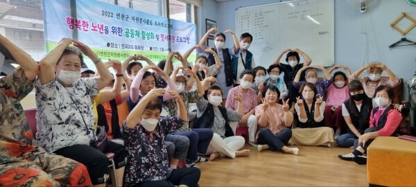 2022년 연천군 자원봉사활동 우수프로그램 공모사업으로 선정된 ‘행복한 노년을 위한 공동체 활성화 및 정서지원 프로그램’ 사업은 5월~9월 기간 5회 진행되며 관내 노인정에서 1회 어르신 30여명을 대상으로 진행된다.
