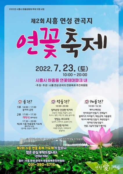 이상익 연성동장은 “우리 마을의 상징인 연꽃을 주제로 마을에 대한 애착심을 높이고 주민들 간 화합할 수 있는 축제가 될 수 있도록 열심히 준비했으니 다함께 즐겨주시길 바라고 나아가 연꽃 축제가 시흥을 대표하는 축제로 자리 잡을 수 있기를 희망한다”고 전했다.