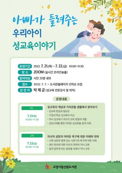 도서관 관계자는 “이번 프로그램이 가정 내 자녀 성교육 문제로 고민인 시민들에게 도움이 되기 바란다”고 전했다.