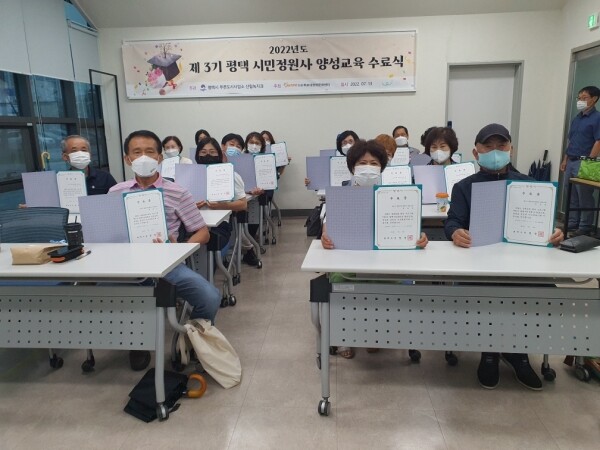 제3기 평택시민정원사 양성교육은 시민들의 정원에 대한 이해도를 높이고 정원관리 활동에 적극적으로 참여할 수 있도록 한 교육과정으로 ㈜푸르네정원문화센터에 위탁해 지난 5월 4일부터 7월 13일까지 총 14회 56시간에 걸쳐 진행됐으며 17명이 수료했다.