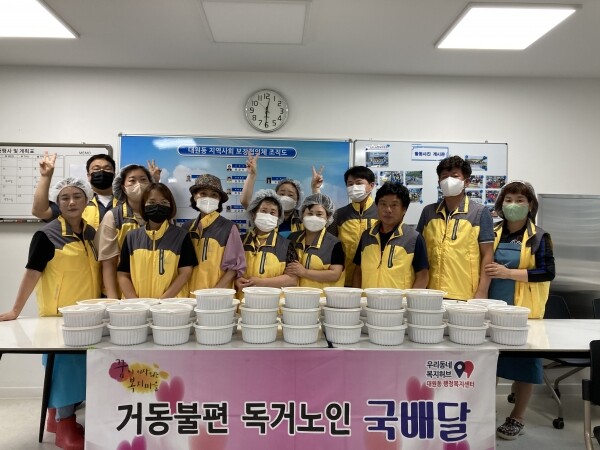 거동불편 독거노인 국배달 사업은 대원동 지역사회보장협의체의 특화사업 중 하나로 독거노인 및 거동불편 어르신들께 매월 2회 정성스레 국을 조리해 전달하고 안부를 살피는 사업이다.