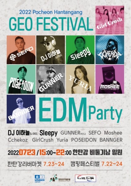 한편 ‘2022 포천 한탄강 지오페스티벌’은 한탄강 세계지질공원의 대표 축제 콘텐츠로 한탄강의 드넓은 자연과 현무암 주상절리 협곡을 무대로 국내 정상급 일렉트로닉댄스뮤직 아티스트들이 화려한 무대를 펼친다.