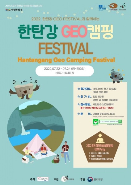 특히 포천 비둘기낭캠핑장에서 열리는 ‘한탄강 지오 캠핑 페스티벌’은 한탄강 유네스코 세계지질공원의 대표 캠핑프로그램이다.