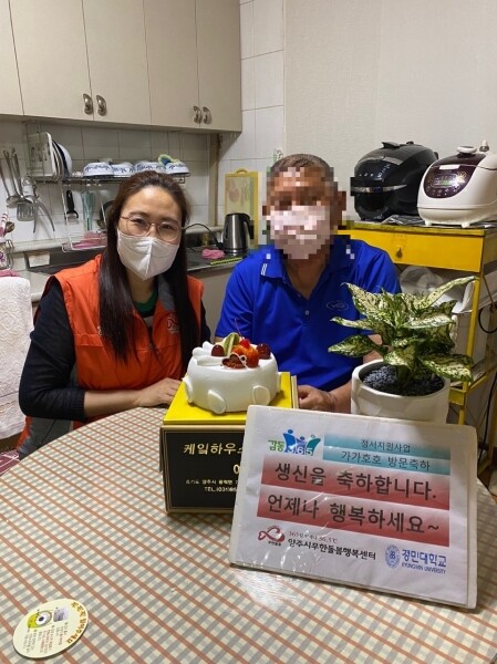 또한 코로나 19 사회적거리두기 상황에서 외출이나 대면으로 생일축하를 받지 못하는 대상자들의 정서적 안정을 위한 안부를 확인하고 함께 생일축하 케익을 전달했다.
